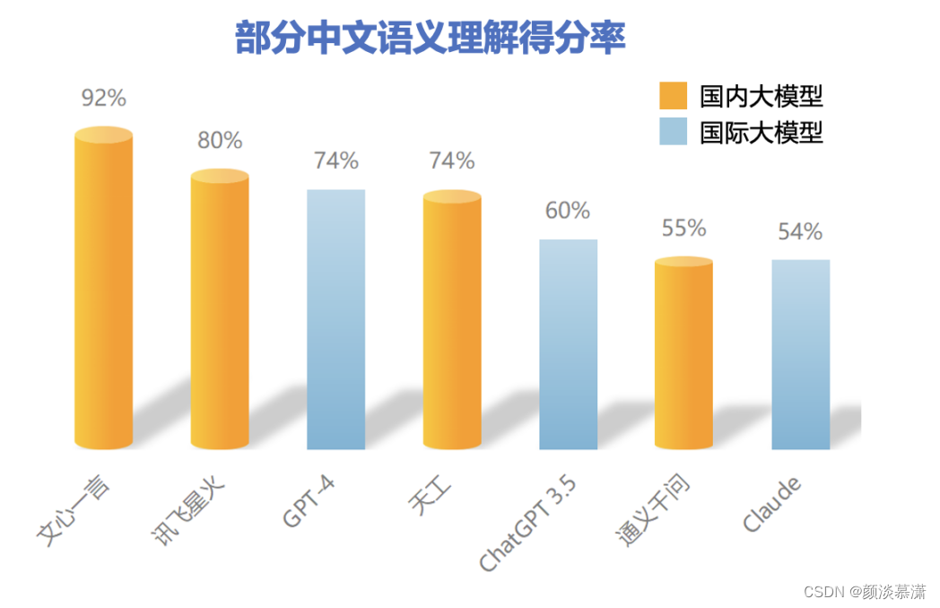 其中,在部分中文语义理解方面,文心一言以92%的得分率排名榜首,超越讯飞星火、GPT-4。凭借知识增强的核心特色,文心一言对本土语言特性把握更精准,同时由于训练语料中包含大量本土文本,对本土文化理解也更深刻,能够更好处理与本土文化相关的主题和背景,如诗歌、方言等,具备更强的国内落地空间。