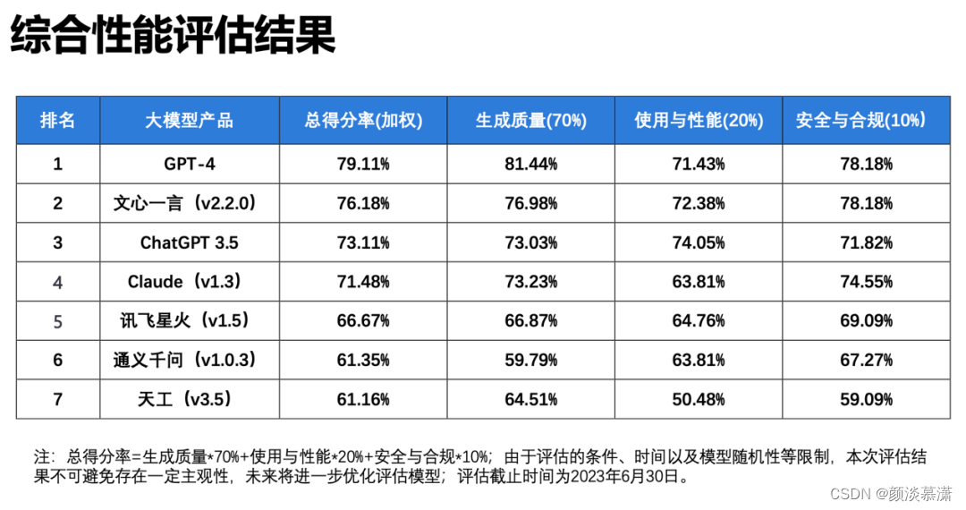 在生成质量方面,基于对语义理解、输出表达、适应泛化的综合评测,文心一言得分率76.98%,仅次于GPT-4,遥遥领先于包括ChatGPT在内的其他大语言模型。